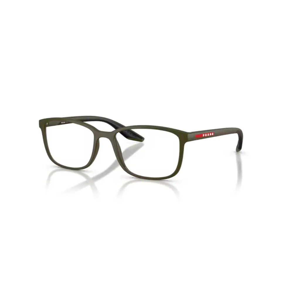 O PS 07RV, da linha Prada Linea Rossa (Sport), exibe um design sofisticado no formato “pillow” quadrado-arredondado, ideal para homens que valorizam conforto, estilo esportivo e leveza em uma armação premium.